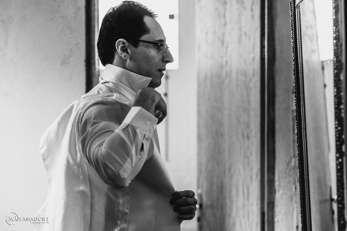 Com os noivos prontos e alguns minutinhos para o início da cerimônia, juntamos o casal sem que um visse o outro, somente com as mãos dadas na frente da porta do quarto da noiva, e a Cintia entregou ao Roberto uma carta com belas palavras. Momento lindo e especial para o casal, que se acalmam no toque das mãos e sentem-se seguros antes da cerimônia.