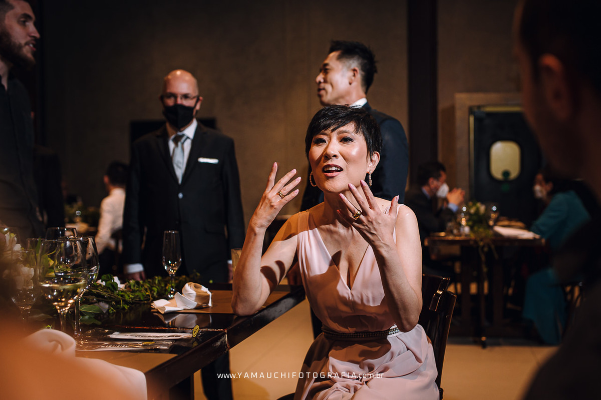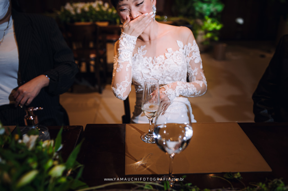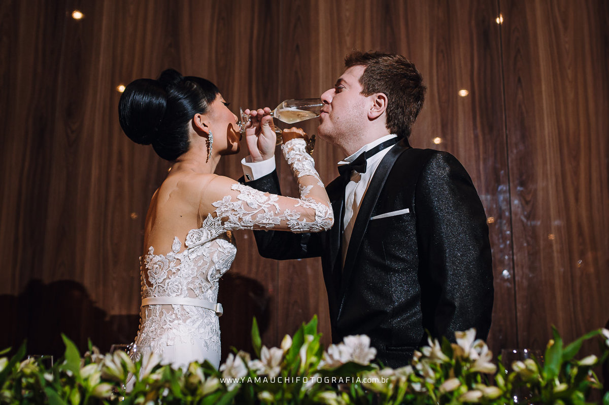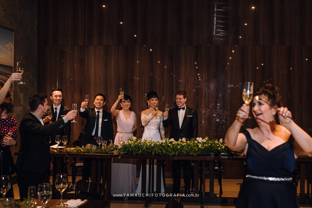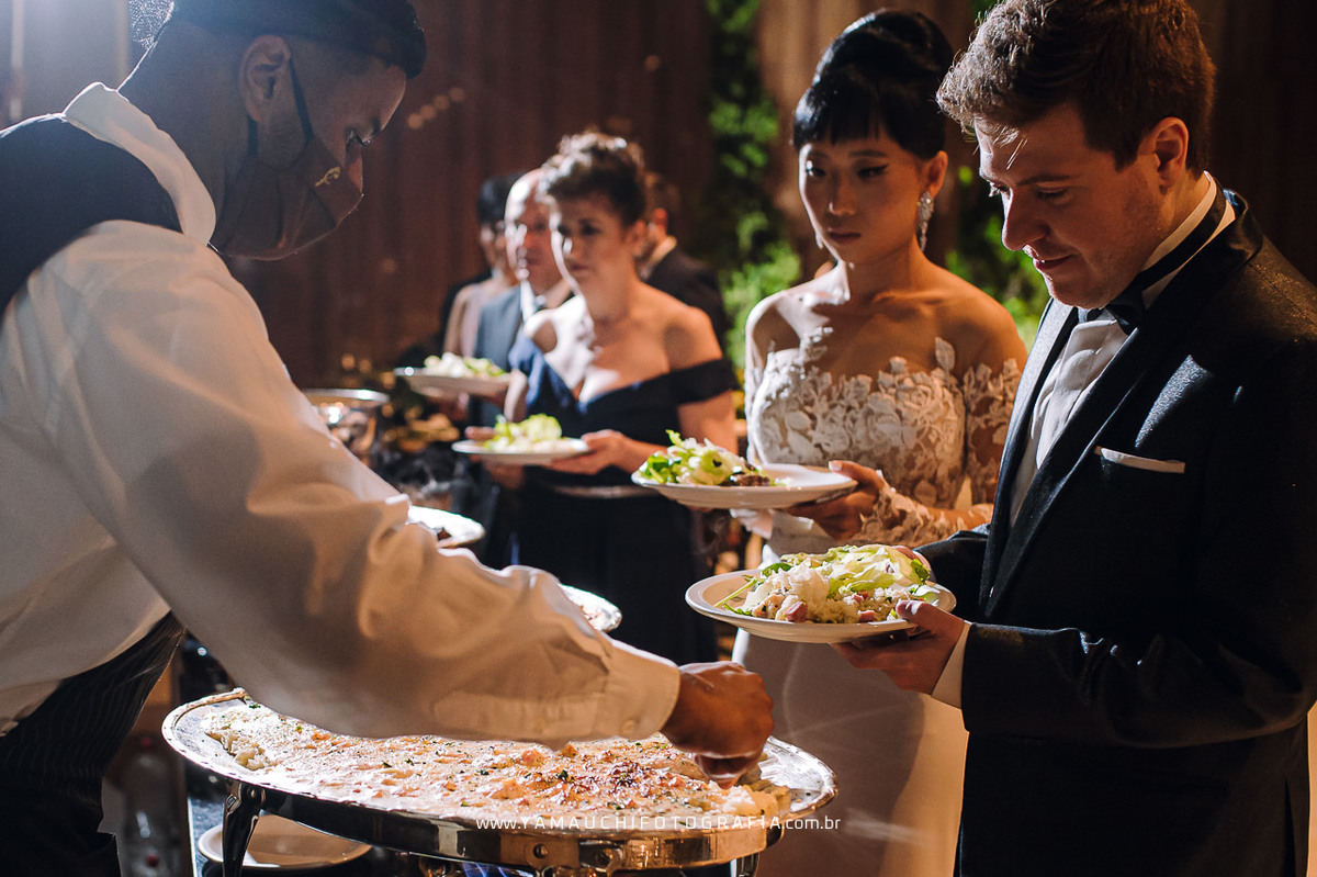 Com um jantar maravilhoso feito pelo Restaurante Coco Bambu, os noivos e convidados se deliciaram, fizeram um grande brinde e aproveitaram o momento com as pessoas que amam.