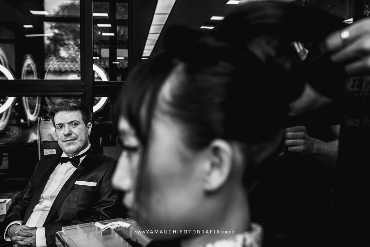 Um detalhe muito diferente neste casamento é que os noivos se arrumaram juntos no Salão Rom.Concept, deixaram a tradição ao de lado e inovaram nos seus making of`s.