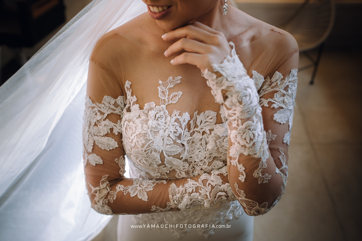 A Eli optou por um coque alto com franja, uma maquiagem sofisticada e um vestido de noiva estilo sereia deslumbrante, a todo momento o Vinicius fazia companhia para a noiva durante a maquiagem e penteado. Saíram de mãos dadas rumo ao grande momento do dia.