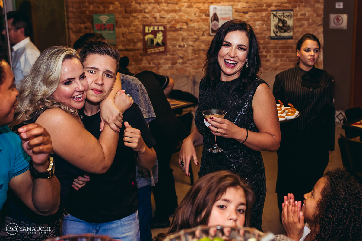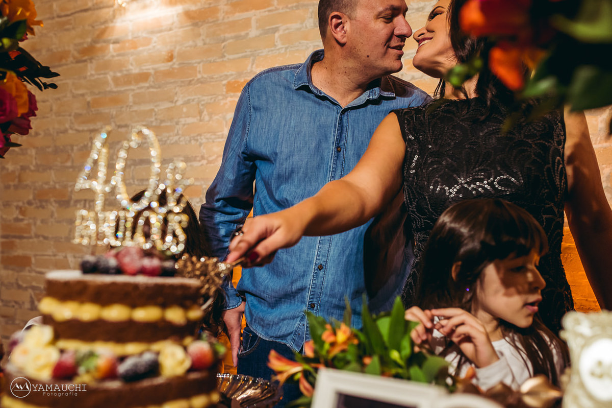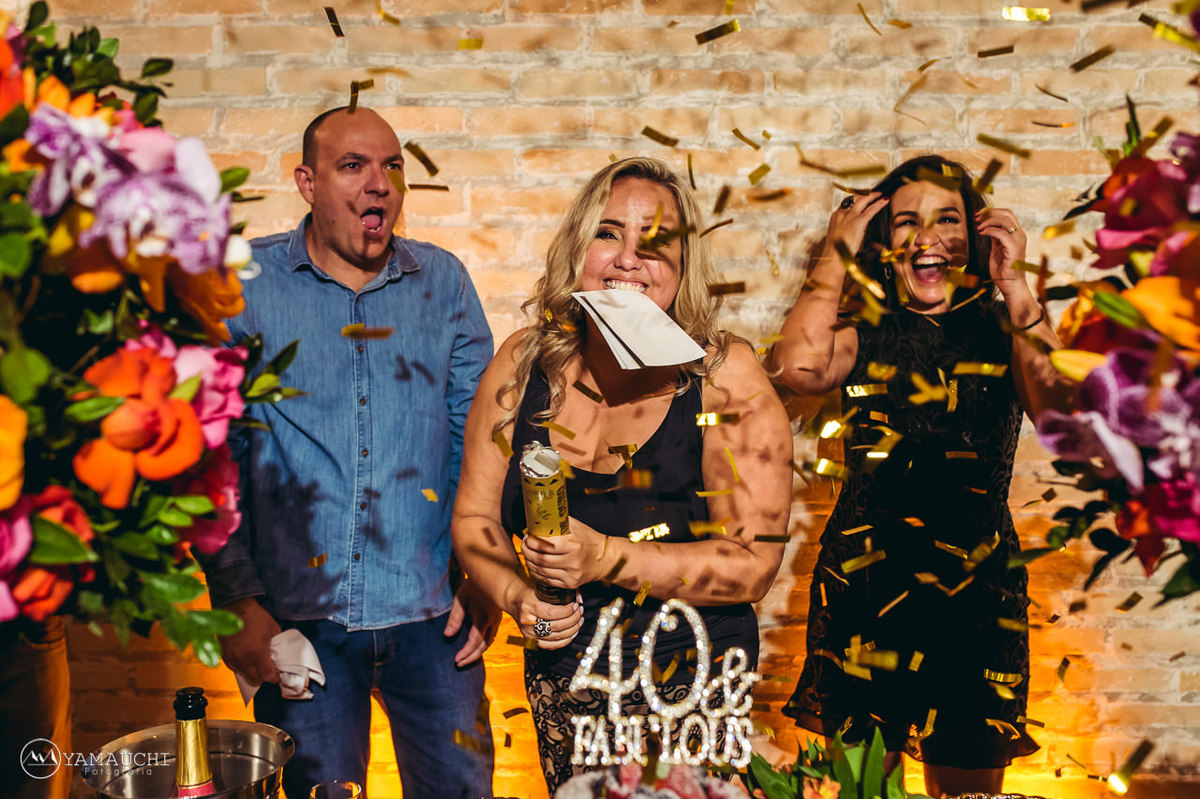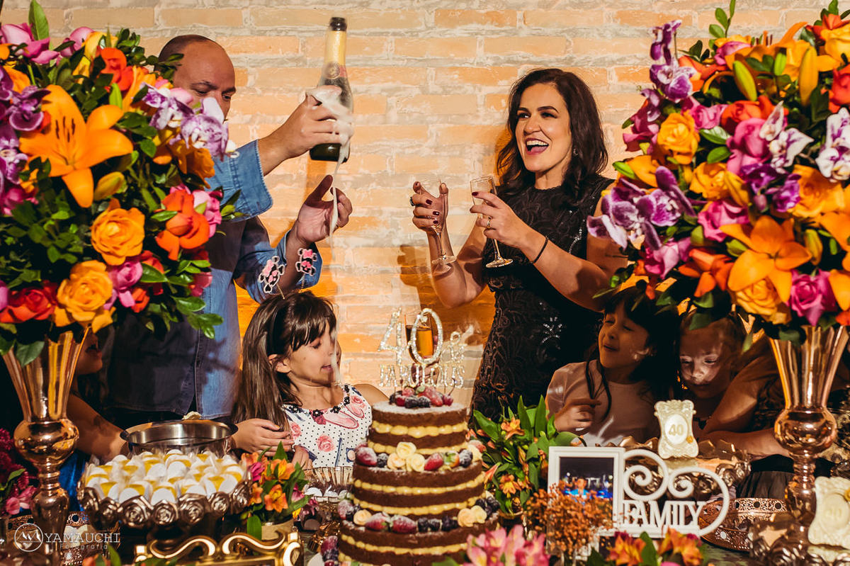 A Melissa estava cercada da sua família e amigos, a felicidade tomou conta do salão, muitas crianças na pista de dança, muita cor e chuva de prata. O parabéns foi regado a champanhe e desejos de felicidade para a aniversariante. Enfim, uma noite incrível para comemorar os 40 anos da Melissa.