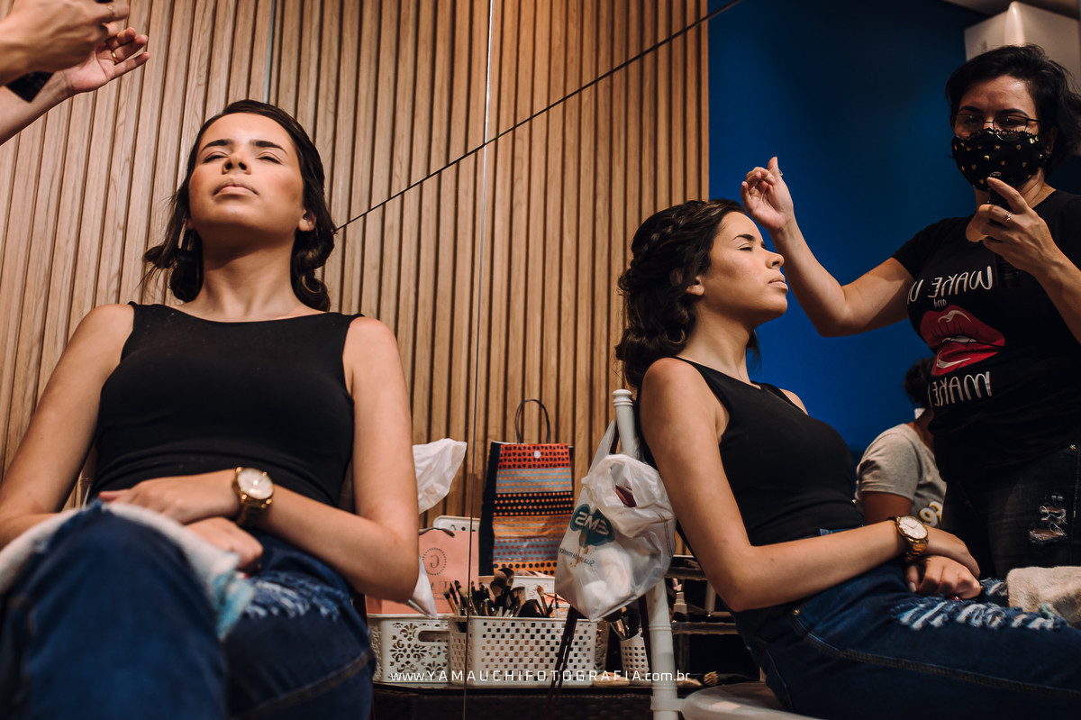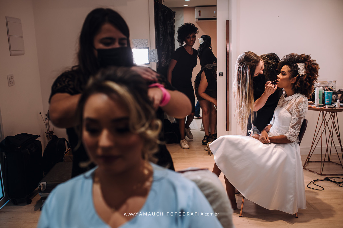 Cuidando da beleza das modelos com a make e penteados para noivas a Aline Christina, Andreza faria, Talita Gonçalvez, Amanda Carmo, Sara Lopes e Lucia Melo.